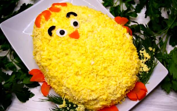 Обычно, мы не затрудняемся в оформлении, и наш салат выглядит примерно так: