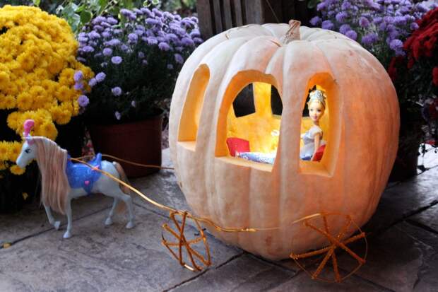 Карета из тыквы, сделанная вами совместно с ребенком своими руками, станет настоящим украшением выставки осенних поделок и в садике, и в школе, и привлечет к себе внимание всех детей. Особенно неравнодушными к ней будут девочки, которые с детства испытывают интерес ко всему, что связано со сказочной жизнью и принцессами.