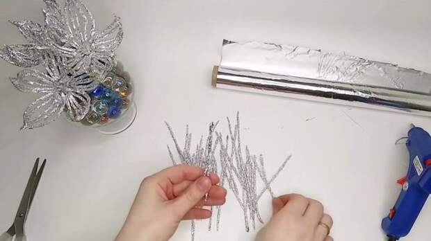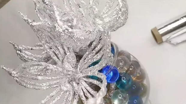 Если посмотреть на эти серебристые цветы, то сразу даже не догадаешься, из чего они были сделаны. Но всё проще простого! Обыкновенная фольга и клей — вот два материала, которые понадобятся для создания этой красоты. Всё настолько просто и быстро, что даже не верится!