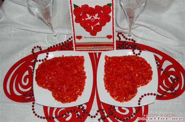 Предлагаю Вашему вниманию, салат и вариант его оформления для романтического ужина на День Влюбленных. Изысканный салат из морепродуктов придется по вкусу вашим любимым людям!