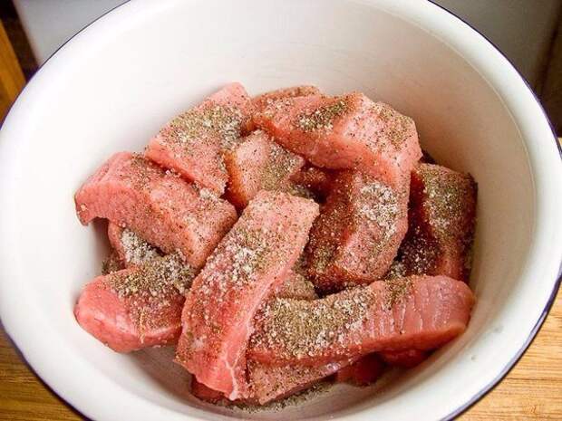 1. Прежде всего, кусок мяса нарезал на ломти, а затем и на полоски.