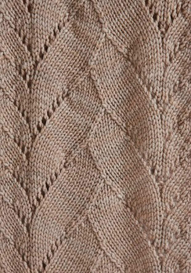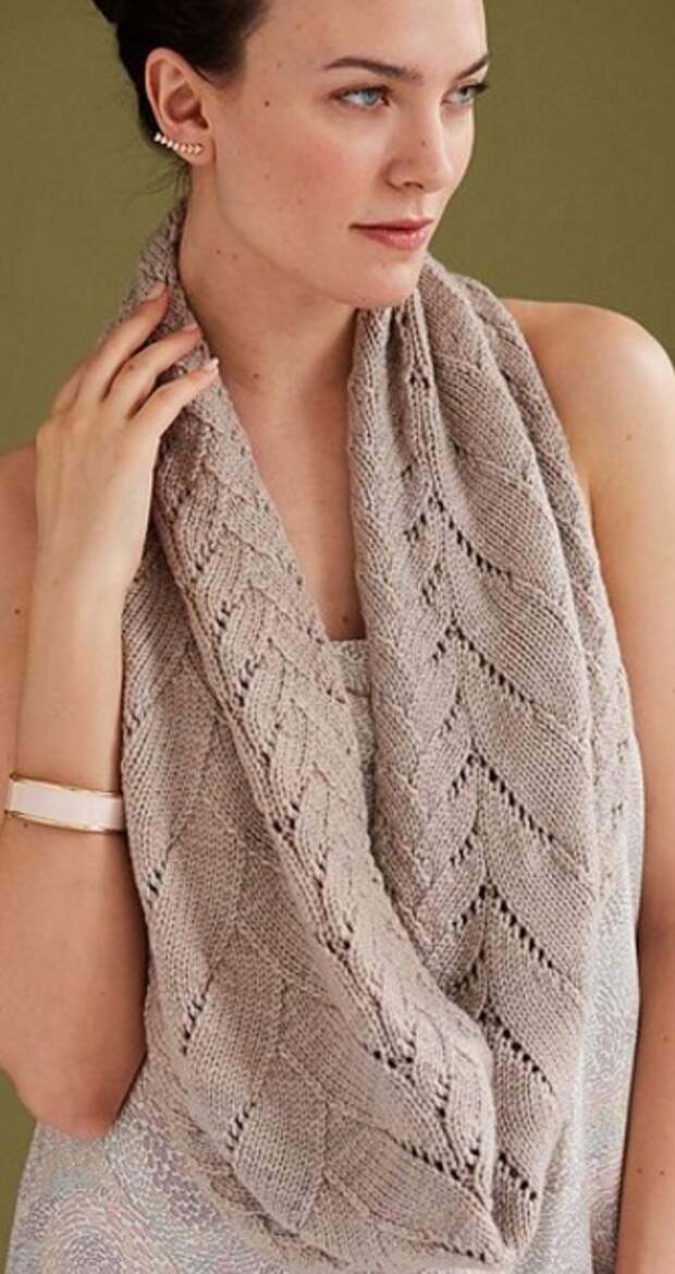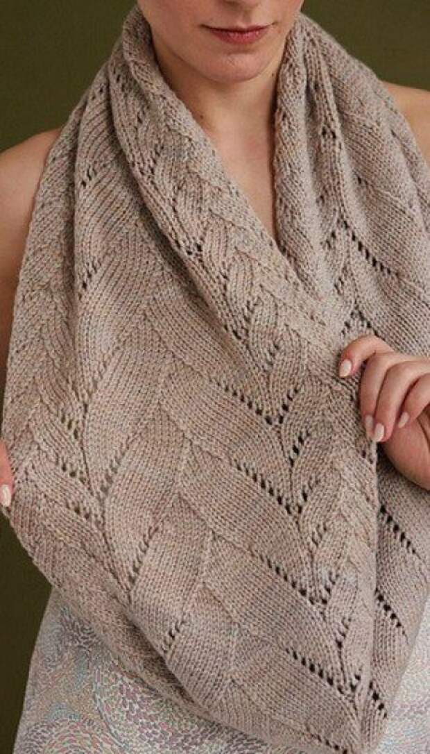 Оригинальный, не избитый и новый узор "Наложенные друг на друга листья", связанный спицами. Такой узор можно комбинировать друг с другом, как это показано на вязаном снуде - широкие листья скомбинированы с узкими. Этот узор Вы можете использовать для вязания самых разнообразных изделий для взрослых и детей.