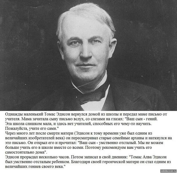 Томаса Эдисона выгнали из школы после первых четырёх месяцев обучения, учитель сказал, что он умственно отсталый.