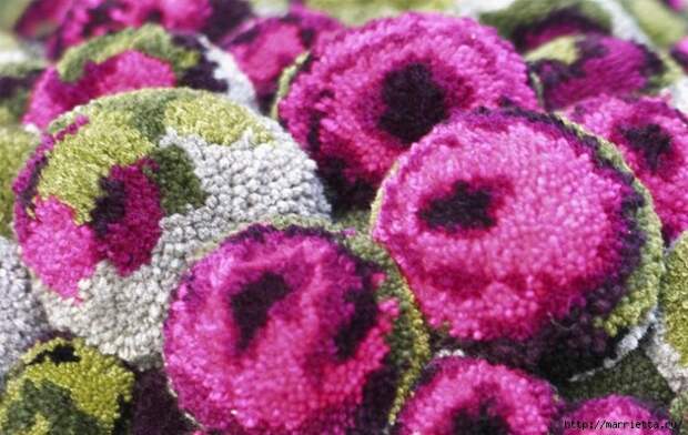 Потом увидела бесподобный пуфик из помпонов. И никак не могла понять, как же они делаются, эти помпоны с рисунком?