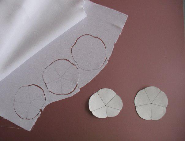Вырезаю из белого искусственного шелка три детали для трех типов цветочков:
