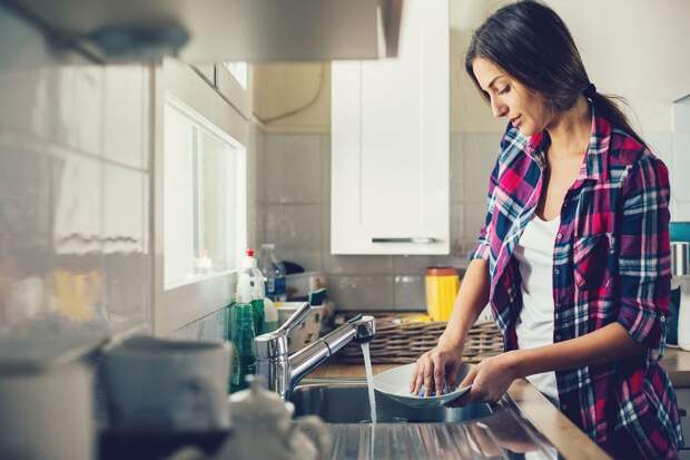 Посуда оставалась грязной. А на полу были лужицы и брызги на стенах. И уставшей после работы женщине приходилось все перемывать. Двойной труд получался....