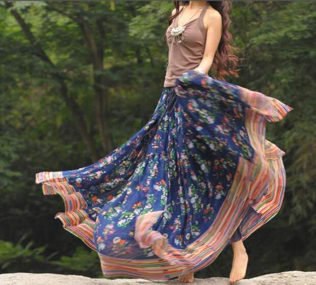 Длинная юбка, в зависимости от того, какой для нее выбран материал, из чего она сшита — это модно, стильно и, скажем так, «в тему» и для любого сезона года, и для разных случаев жизни.