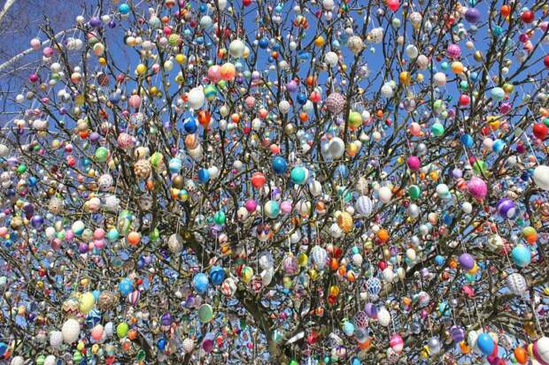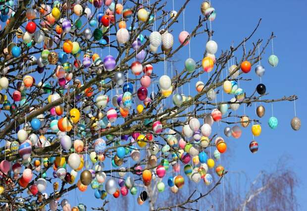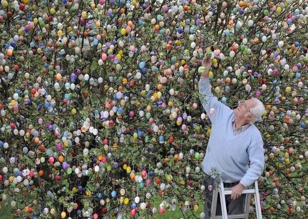 Считается, что первые пасхальные деревья появились в Германии, где бытовала традиция украшать нарядными яйцами кусты сирени. Это вдохновило нашего современника, немца Фольке Крафта, и уже больше полувека он ежегодно наряжает яйцами яблоню, которую когда-то сам посадил.
