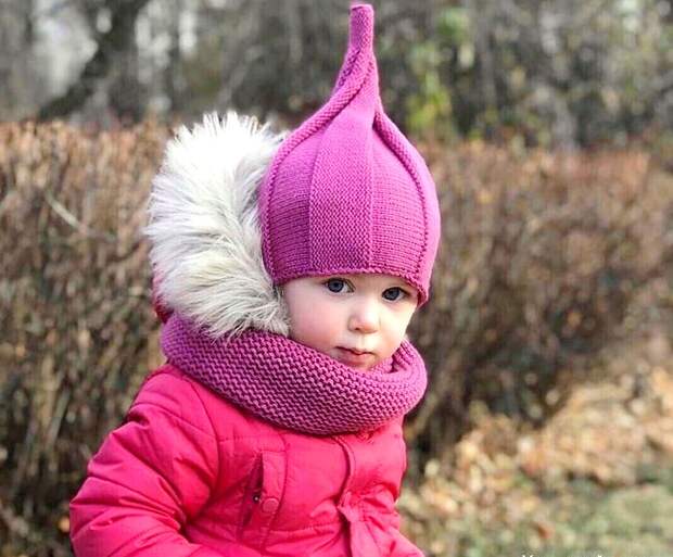 Шапка эта довольно оригинальная и интересная, а вязать её не сложно. Для детской шапки можно использовать пряжу разного цвета и тогда она будет смотреться еще красивее.