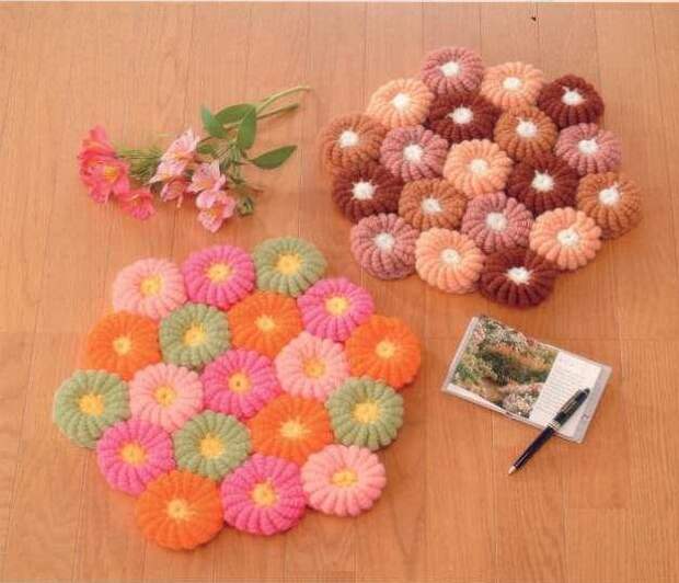 Очень многим нравятся эти вязаные коврики, но почти никто так и не осмелился вязать, а те, кто пробовал, наверняка плюнули, потому что вся загвоздка заключается в витых столбиках, для вязания которых требуется необычный крючок.