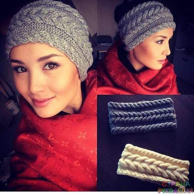 Эта вязаная повязка на голову, связанная спицами, очень оригинальна. Она закроет ваши уши и защитит их от пронизывающего весеннего ветра, а заодно украсит и вашу голову.
