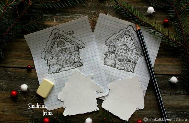 Можно сделать из таких избушек магнитики на холодильник, а можно - просто игрушки на елку или подарки друзьям.