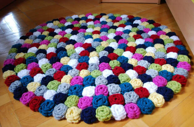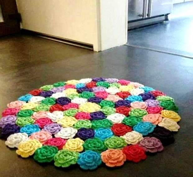 Вязаный коврик из розочек крючком