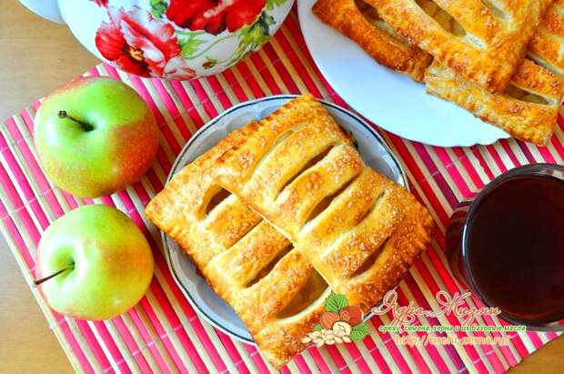 Если надо приготовить что-то к чаю на скорую руку, то можно быстро сделать слойки с яблоками. Воспользуемся для этого готовым слоеным тестом. Бездрожжевое слоеное тесто содержит больше слоев, поэтому предпочтительнее использовать именно его.