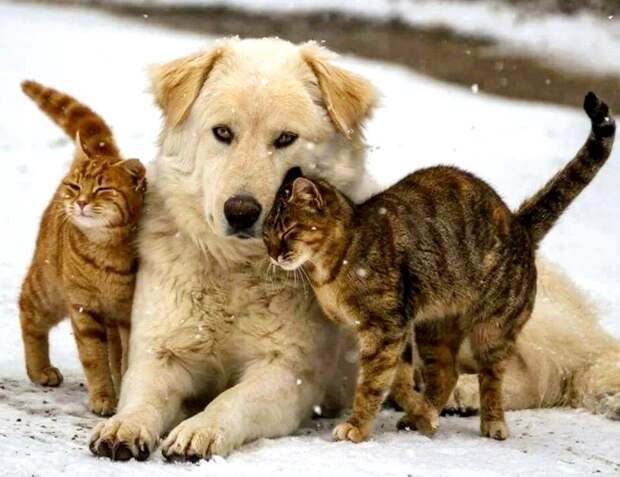 Две собачки и три кота, мелко дрожа от холода, улеглись на мягких подстилках и вкусно захрустели сухариками.