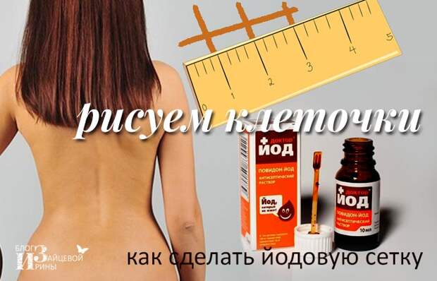 Йодную сетку на кожу наносят при помощи ватных косметических палочек – тех же самых, что обычно применяются для чистки серы в ушах. Такую палочку нужно обмакнуть в 5%-ный раствор йода и нарисовать на теле решетку из вертикальных и горизонтальных полос. Величина «ячеек» идеальной йодной сетки обычно составляет около 1 квадратного сантиметра.