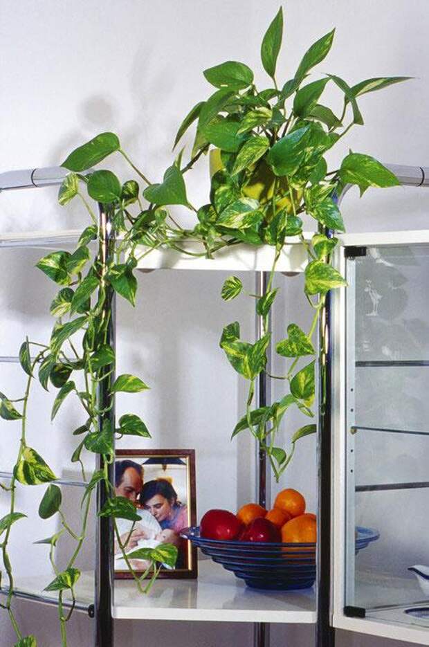 Сциндапсус — нетребовательное растение, способное расти в самом темном углу комнаты и при любой температуре.