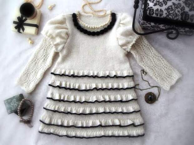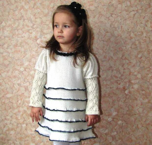 Платье вяжется на круговых спицах по кругу.