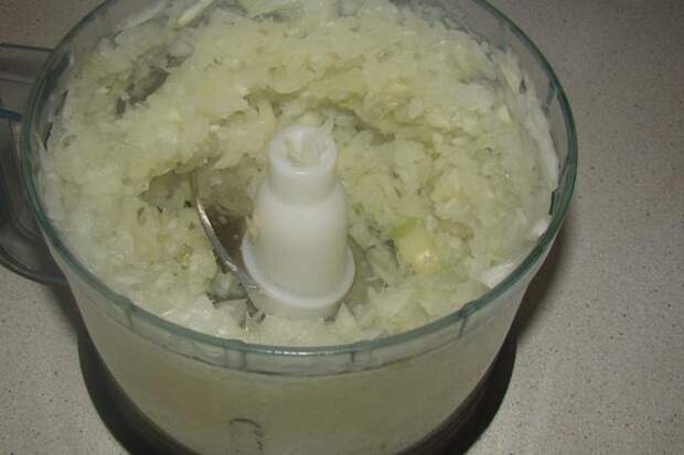Измельчить в блендере и выдавить сок.Лукового сока должно получиться не менее 50 гр